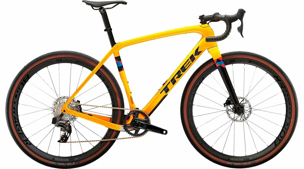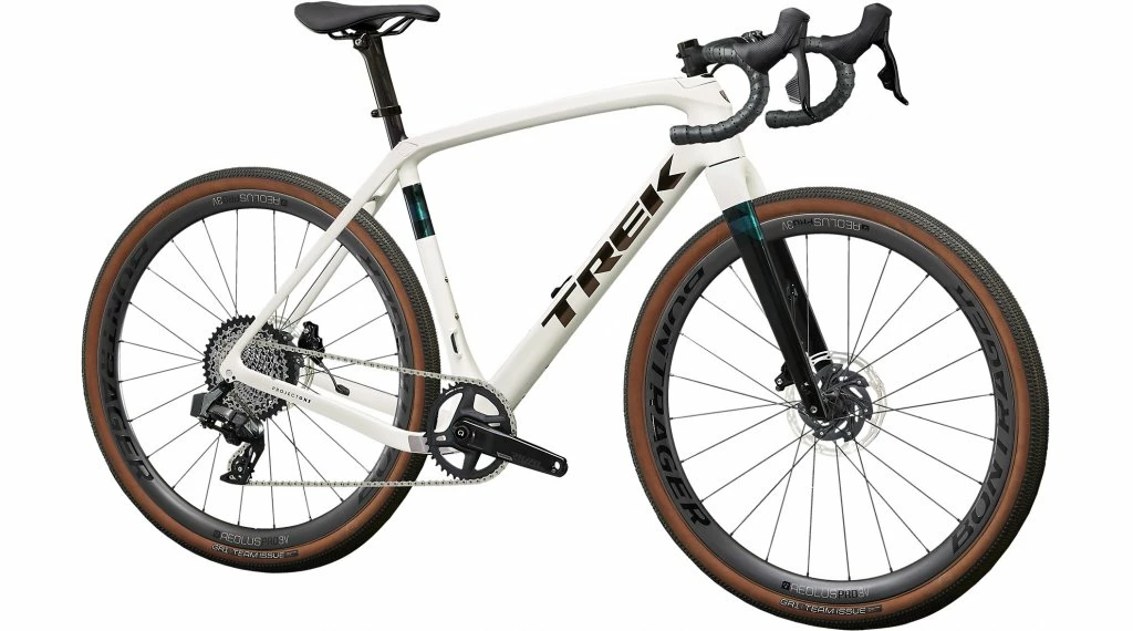 Un cadre en carbone OCLV série 700 avec IsoSpeed et Carbon Armor à l’avant, une géométrie progressive stable à grande vitesse et efficace dans les montées raides, un compartiment de rangement interne, des câbles cachés qui ne gênent pas vos sacs et des attaches intégrées pour un sac de cadre et des garde-boue. Il existe également une fourche en carbone, la transmission électronique sans fil Rival eTap AXS 2×12 de SRAM avec une large plage de vitesses, les roues Aeolus Pro 3V de Bontrager en carbone OCLV et de larges pneus gravel 700 x 40C pour une stabilité et une traction supplémentaires. Le cadre offre de l’espace pour les pneus jusqu’à une largeur de 45C.